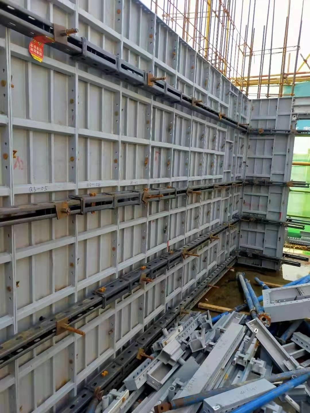 2.不可重復利用。相對木模的任意拼接(異性除外),鋁模是在工廠定制,出廠即定型,使用時直接根據圖紙,不同構建、不同部位的尺寸使用不同模板,安上螺絲。理論上一套模板只能用在標準層(地下室這類只能使用一次一般不會使用),如果不同樓棟標準層相同也能使用。