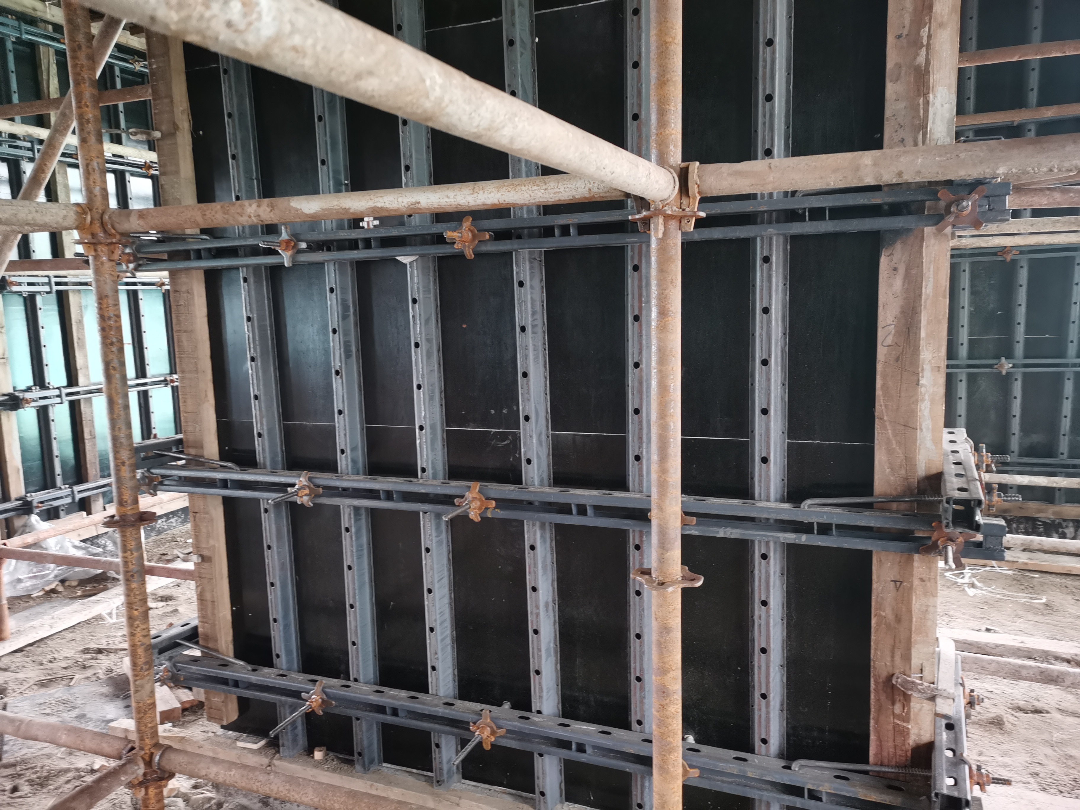 在當(dāng)今的現(xiàn)澆混凝土施工過程中,成套鋼支撐體系已經(jīng)取代木方和圓管來加固剪力墻模板。成套鋼支撐體系愈來愈受到施工企業(yè)和地產(chǎn)開發(fā)商的認可。興民偉業(yè)成套鋼支撐體系包含由橫楞、豎楞、橫楞連接件、陰角鎖具和陽角鎖具等組成以此來加固剪力墻模板。